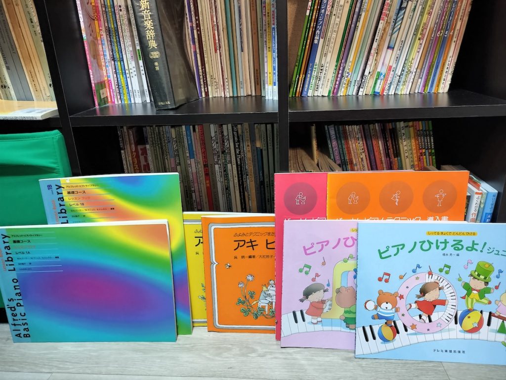 たくさんのテキストを見比べました。その中から厳選したテキストをレッスンで使用しております。ただ、生徒さまに応じて、別のものを使用するなど柔軟なレッスンを心がけております。また、教室オリジナルの教材も使用してレッスンします。